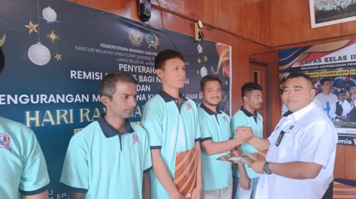 Sukabumi, Lembaga Pemasyarakatan (Lapas) Kelas IIA Warungkiara melaksanakan kegiatan pemberian Surat Keputusan (SK) Remisi Hari Raya Natal Tahun 2025 bagi Warga Binaan Pemasyarakatan (WBP)